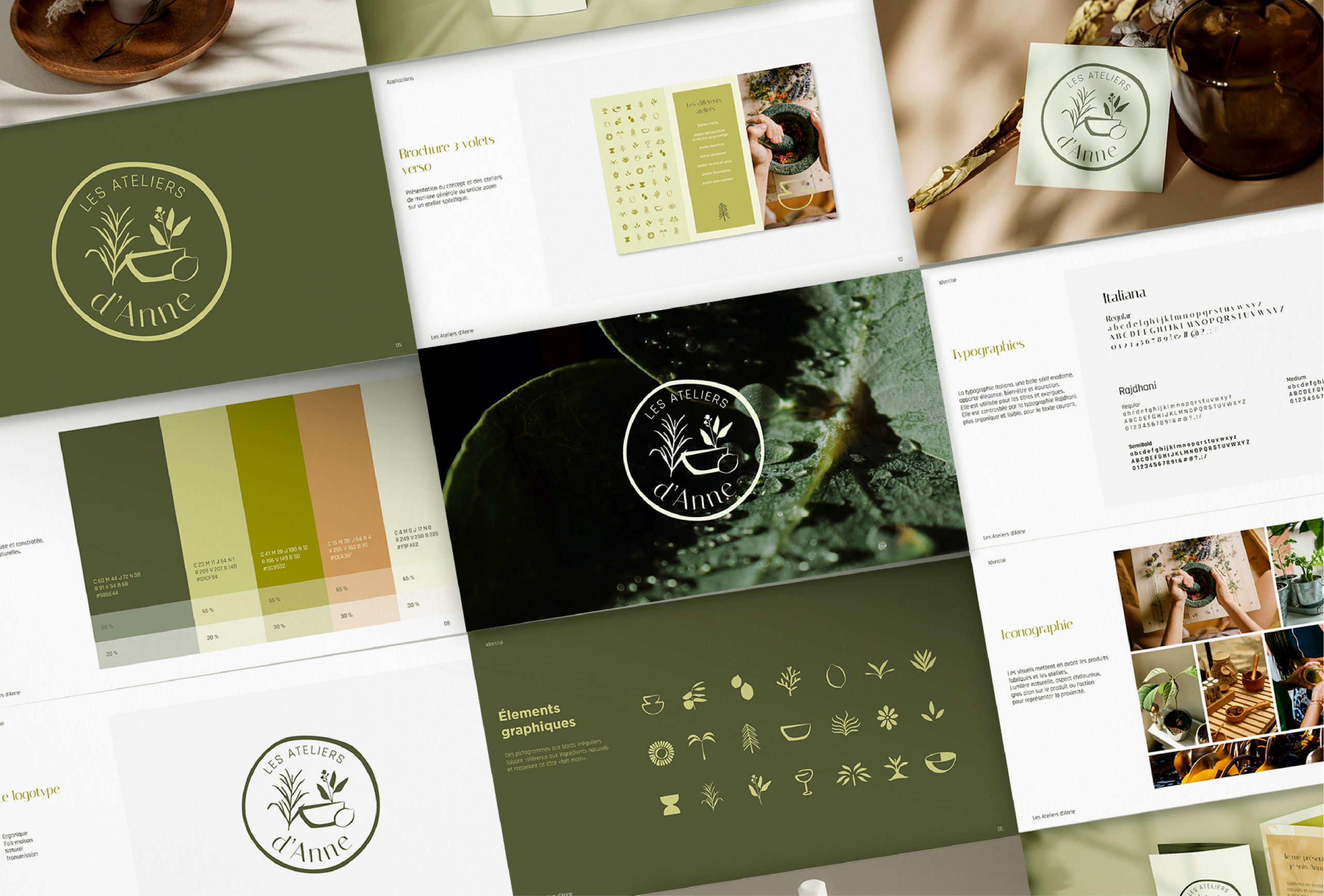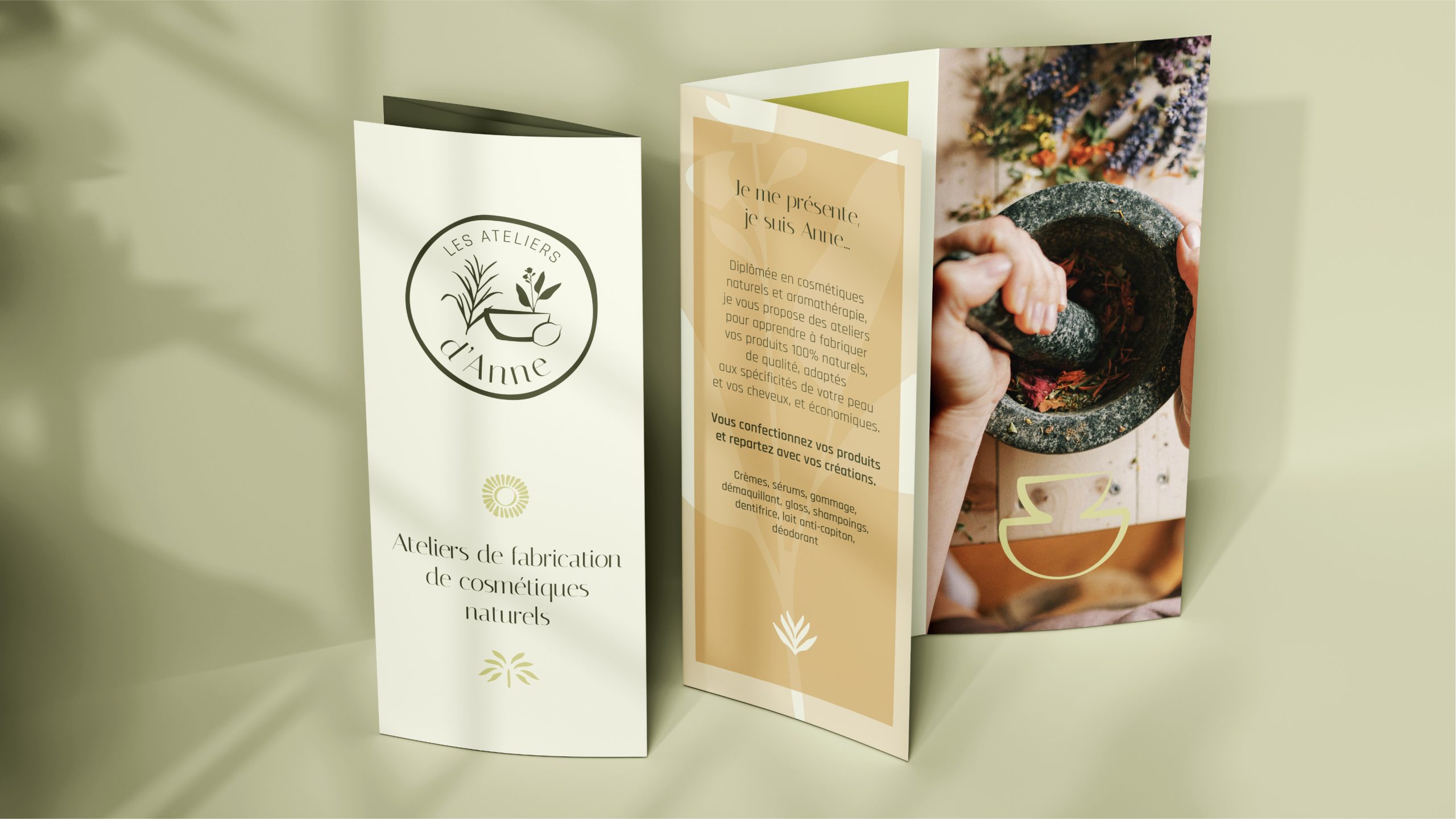 Création d’une identité visuelle pour Anne, en reconversion professionnelle, qui propose des ateliers de fabrication de cosmétiques fait-maison.
