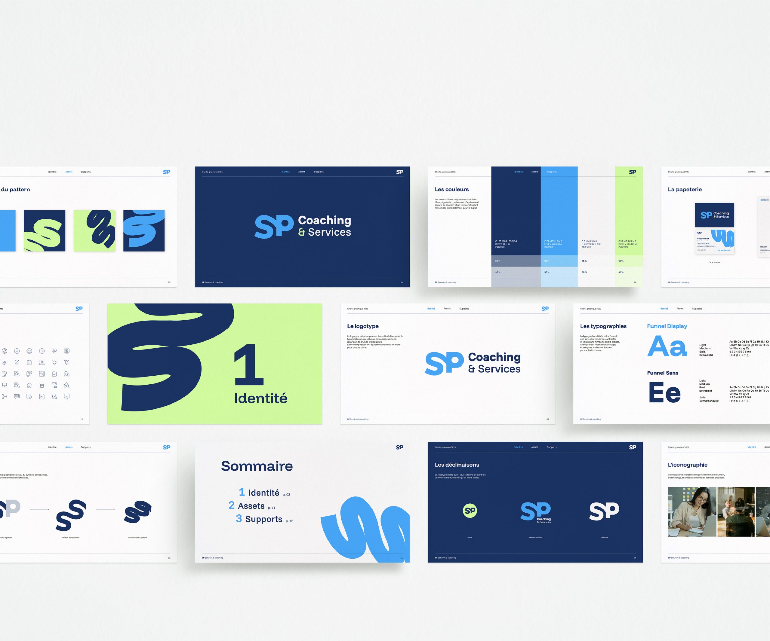 Création d’une identité visuelle pour SP Coaching & Services, un coach professionnel certifié en reconversion professionnelle.